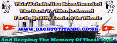 This R.M.S. TITANIC MEMORIAL SITE is dedicated to the 1,522 men, women and children who lost their lives that cold morning of April 15, 1912 and the 705 survivors that spent up to 6 hours huddled in lifeboats in freezing temperatures of the North Atlantic before being rescued by the Cunard Liner Carpathia. The song playing on this web page is "Nearer, my God, to Thee". It is generally excepted that this is the song played by the Titanic's band lead by Wallace Hartley, as the she sank beneath the ocean. The entire band perished. |