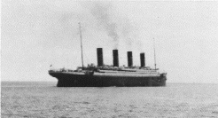 The Titanic was bid a fond fairwell as it left Queenstown, Ireland bound for New York on April 11, 1912. This is the last picture ever taken of her afloat as she sailed off into the sunset and her tragic end just 3 days later. |