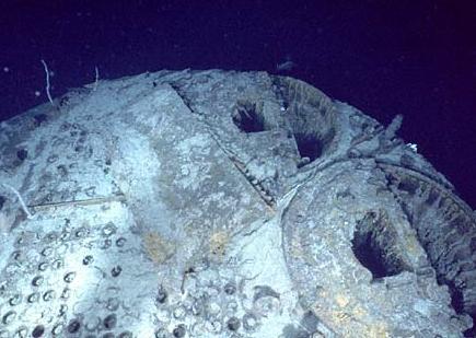 Titanic boiler on the ocean floor |
